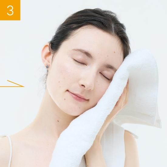 3. ぬるま湯、または水で十分にすすぎ、優しくタイルで拭き、その後、化粧水等でのスキンケアを行ってください。